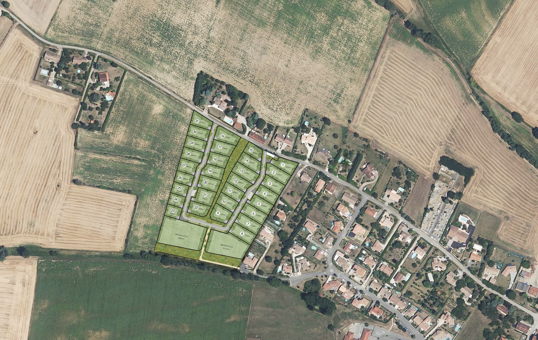La tranche 1 est composée de 15 lots viabilisés, d’une surface comprise entre 520 et 750 m².